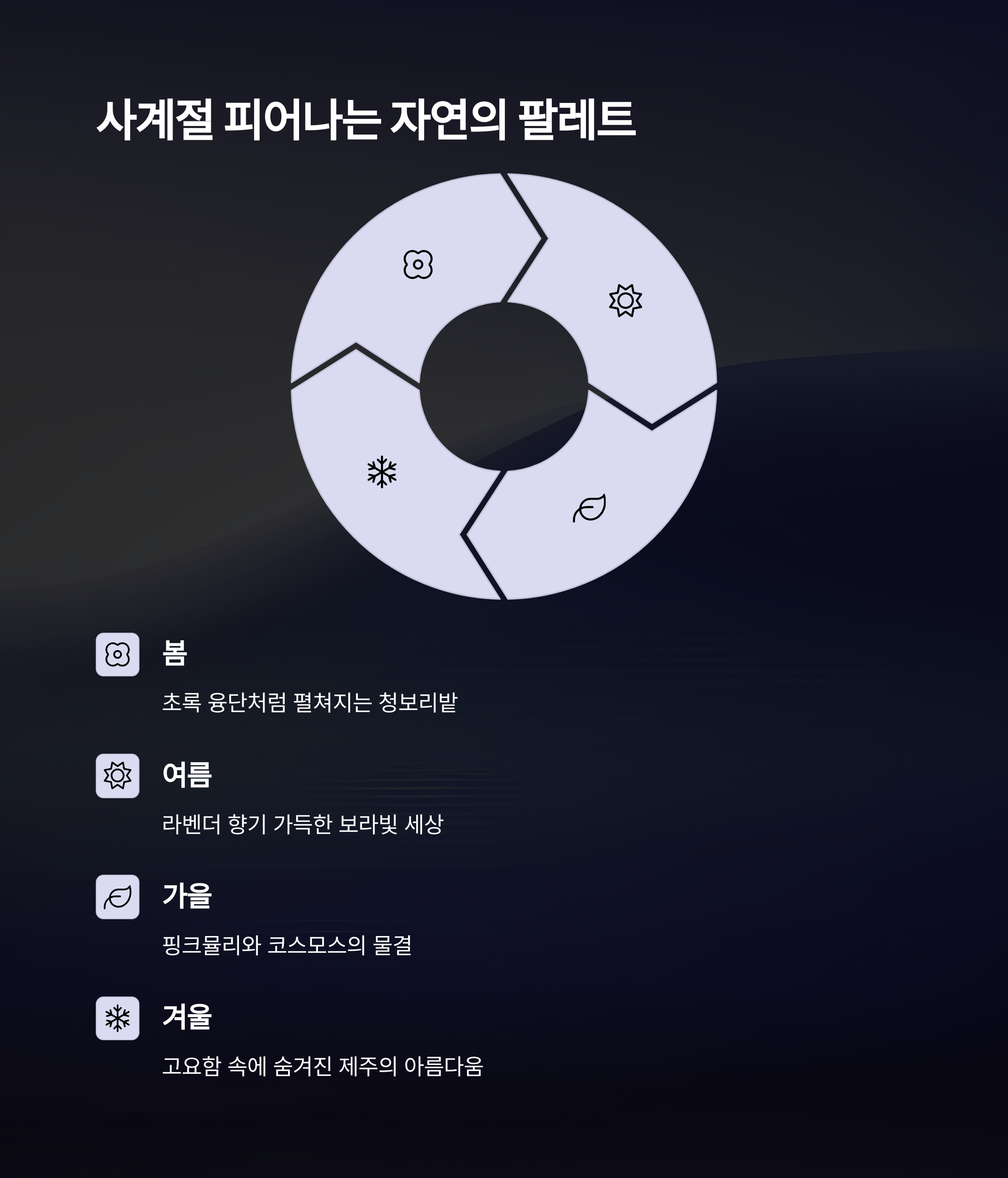 제주 보름왓은 계절에 따라 전혀 다른 매력을 선사합니다