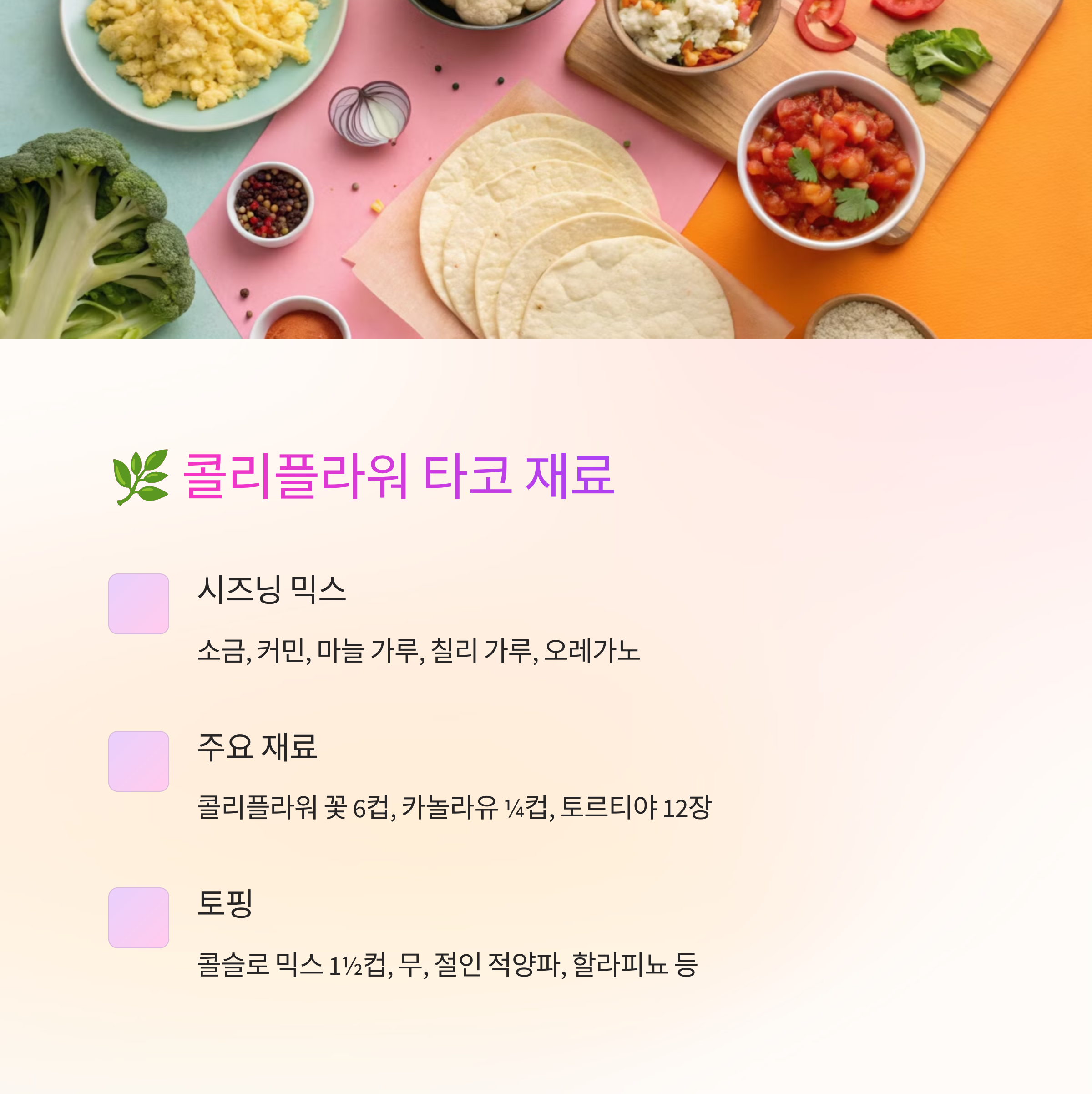 🥦 콜리플라워 타코 레시피 (초보자용 완벽 가이드)