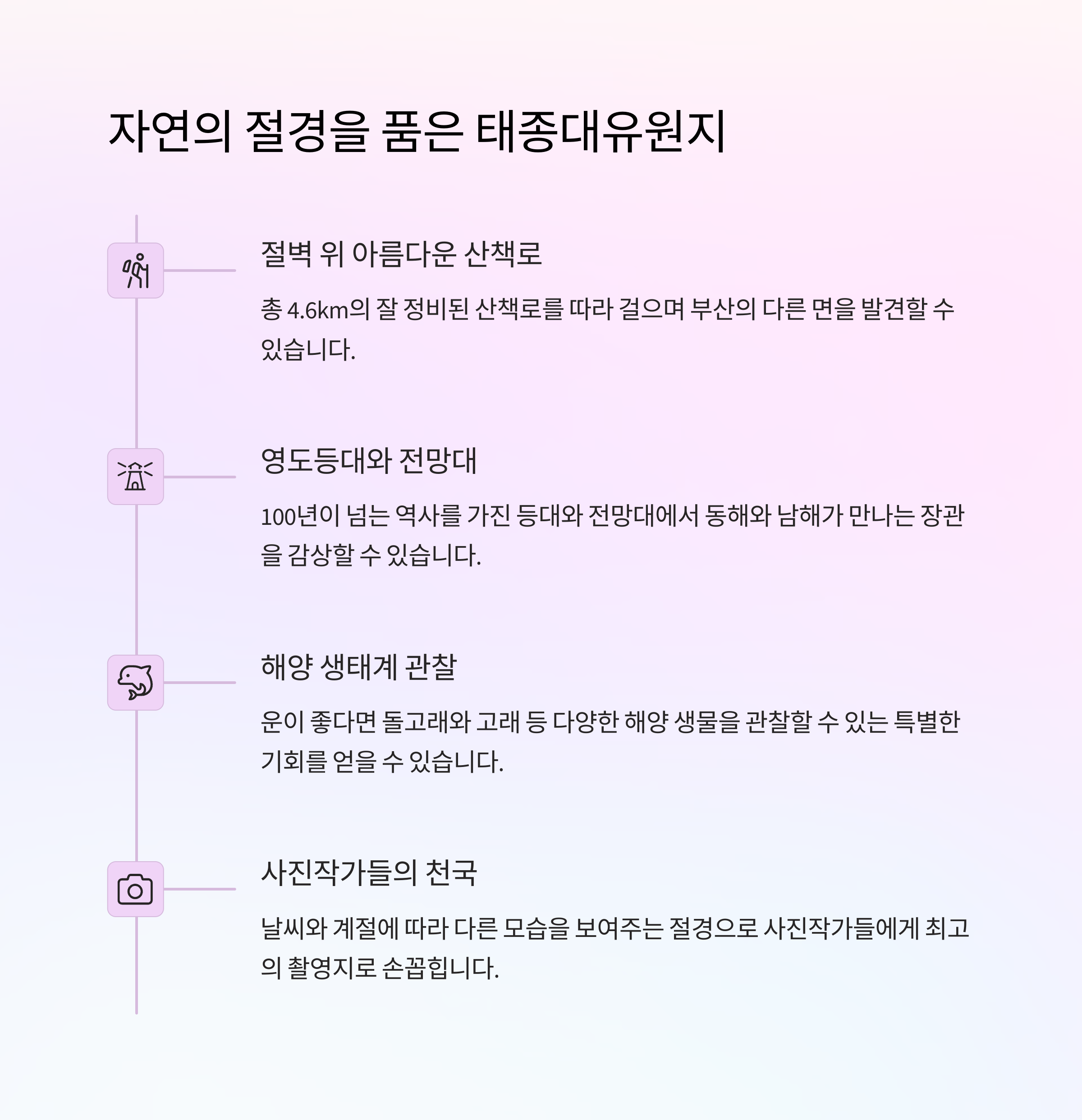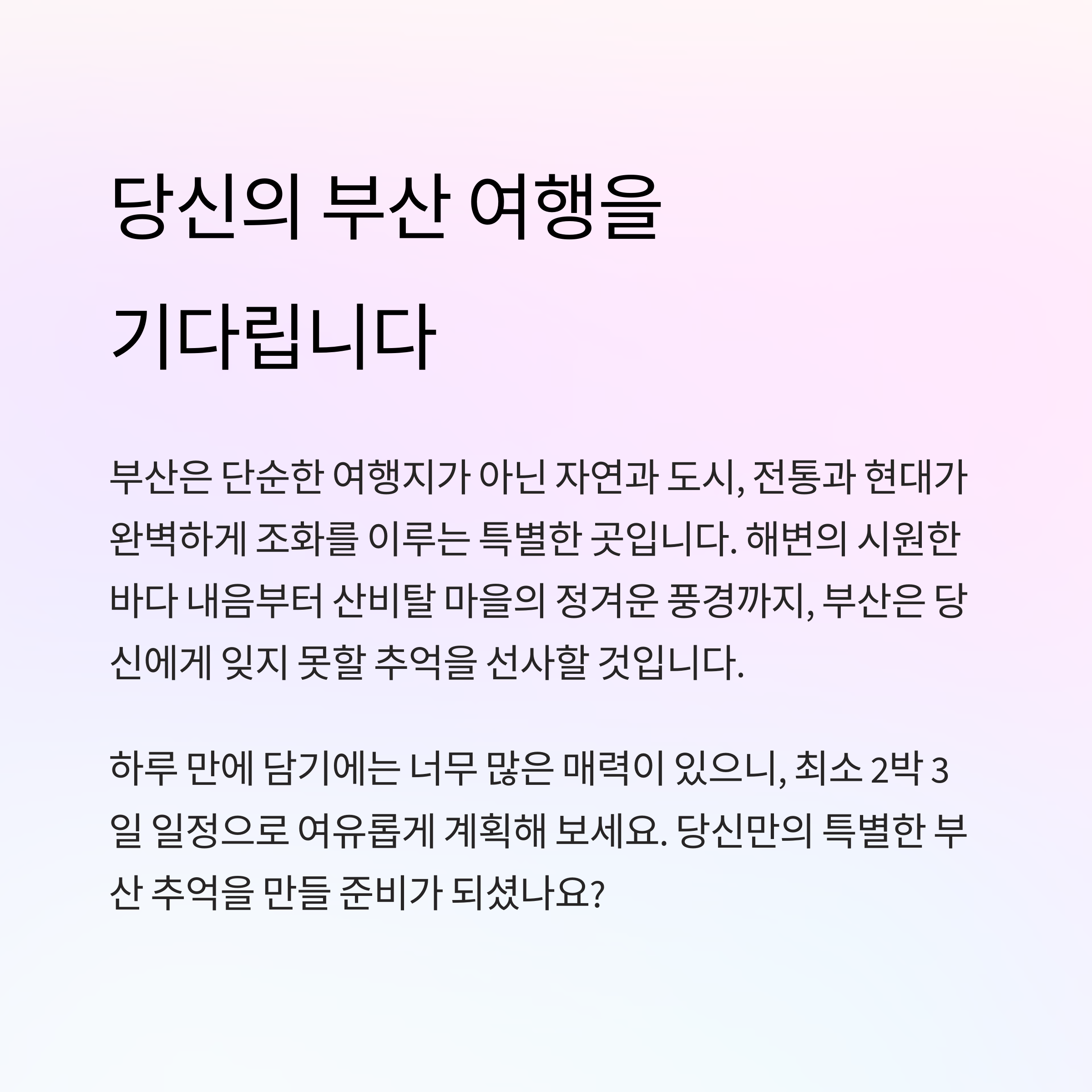 부산에서의 시간은 여러분의 하루를 더 특별하게 만들어줄 것입니다. 😊